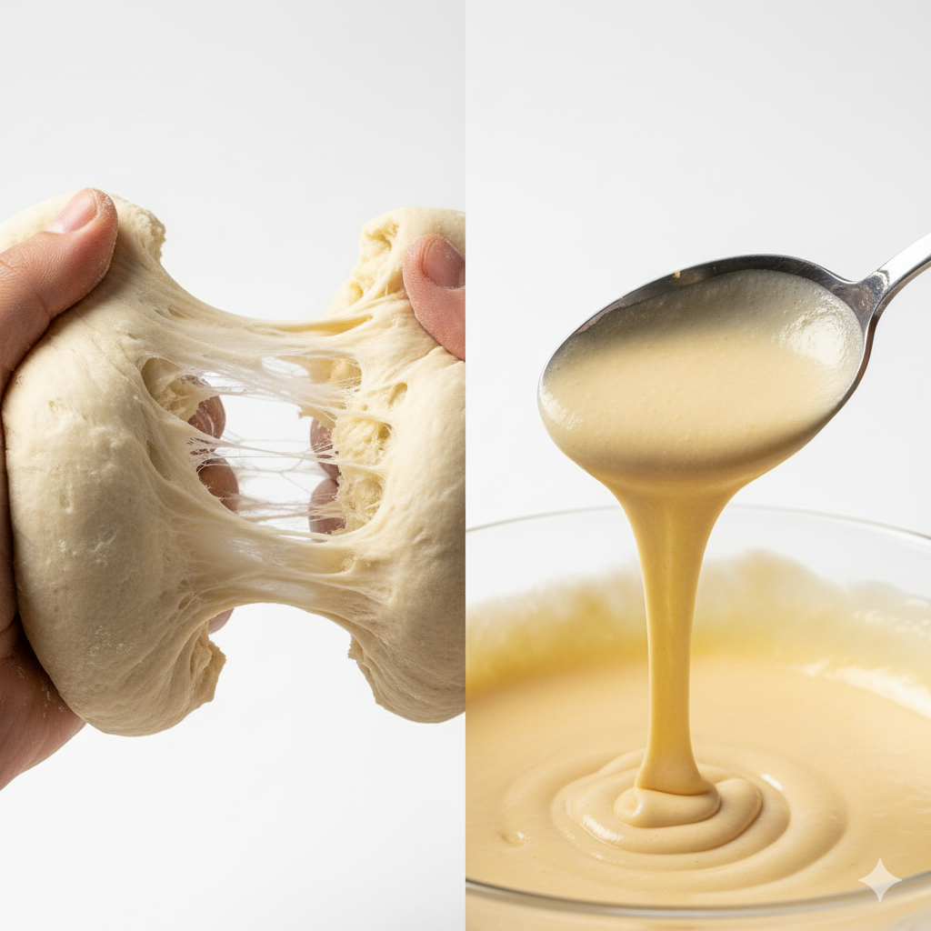 下のどちらも小麦粉ベースで、水や卵が混ぜ合わさったものを指しますが、水加減が違うんですね。