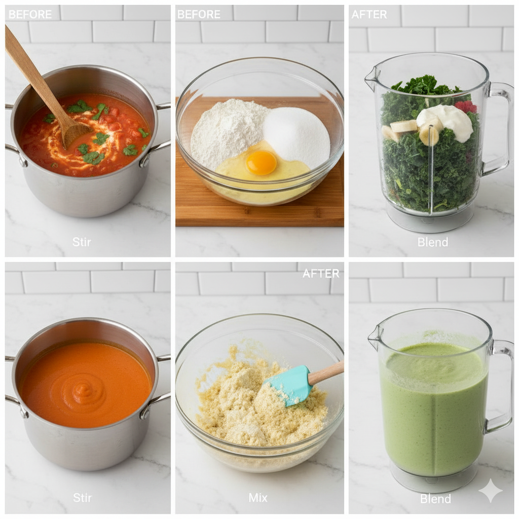 - “Blend the ingredients until smooth.” (材料が滑らかになるまで混ぜます)