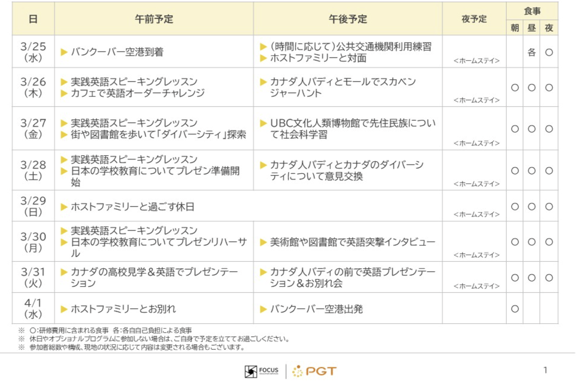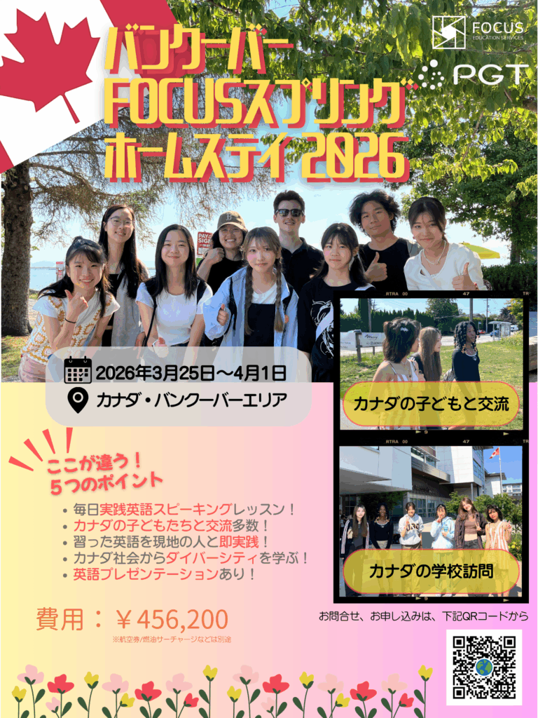 2025年のFOCUSイングリッシュサマーキャンプは、旅行会社PGTの企画運営のもと提供されます。